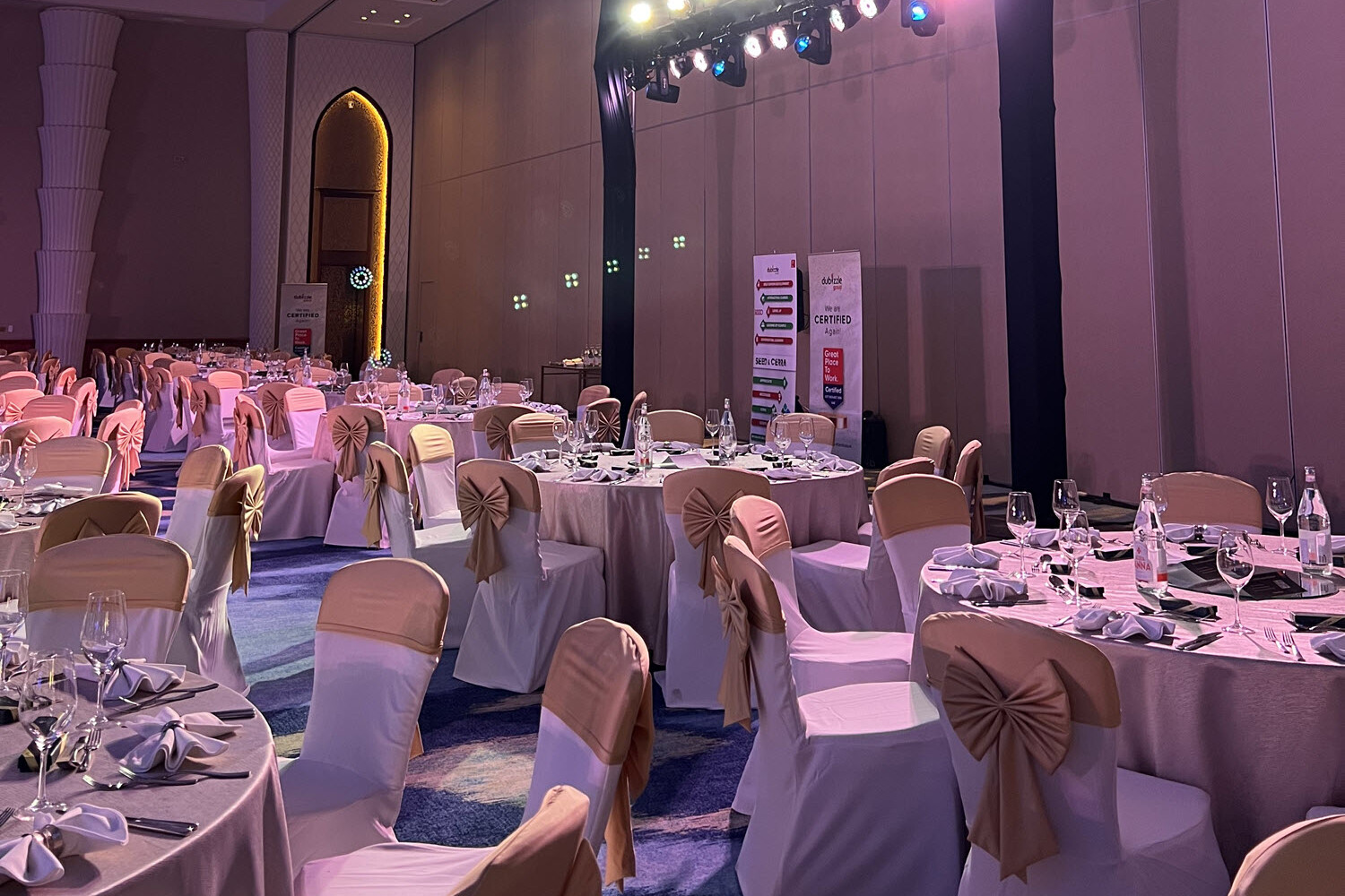 Bayut | dubizzle required an event production and AV setup company in Dubai capable of managing the live technical environment of a large-scale corporate gala night. The scope demanded a reliable audio-visual setup suitable for a premium ballroom setting, DJ programming that maintained energy while remaining appropriate for a professional audience, and event photography and videography that captured both brand presence and guest experience.