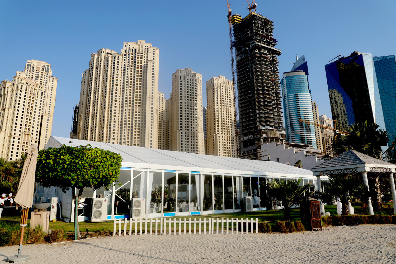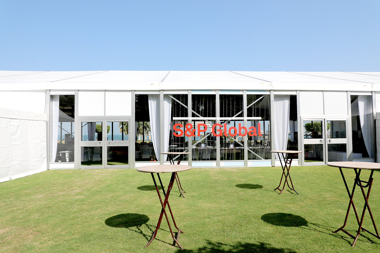 S&P Global is a leading international provider of financial intelligence, credit ratings, benchmarks and analytics, supporting governments, institutions and global corporations in making informed economic and investment decisions. Known for its precision, credibility and analytical depth, the brand operates in highly controlled, information-driven environments where clarity and professionalism are essential. For its corporate gathering in Dubai, S&P Global hosted an outdoor event at The Ritz-Carlton, JBR, a beachfront luxury property requiring careful technical planning and environmental control. The programme demanded a purpose-built event environment that could support presentations, discussions and audience engagement while maintaining comfort, sound clarity and brand consistency in an open-air setting. Pangea Events was appointed to design, build and manage the complete event infrastructure, delivering an outdoor corporate environment that met S&P Global’s standards for accuracy, discretion and execution.