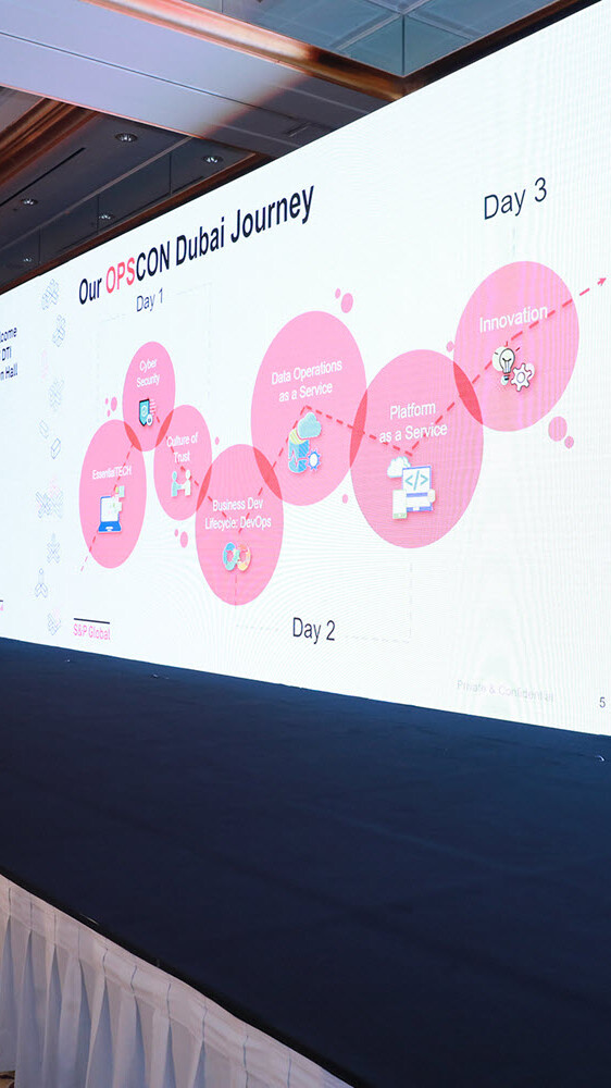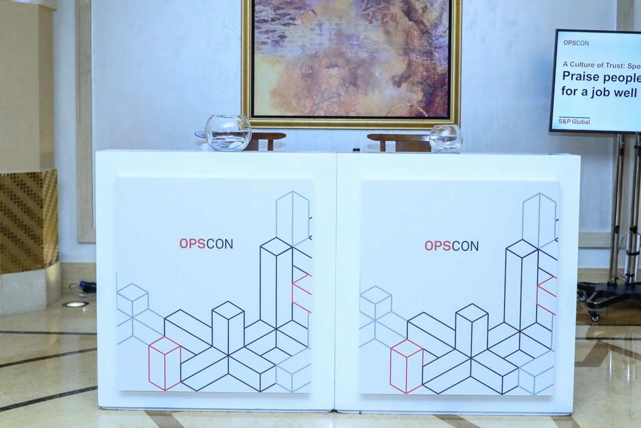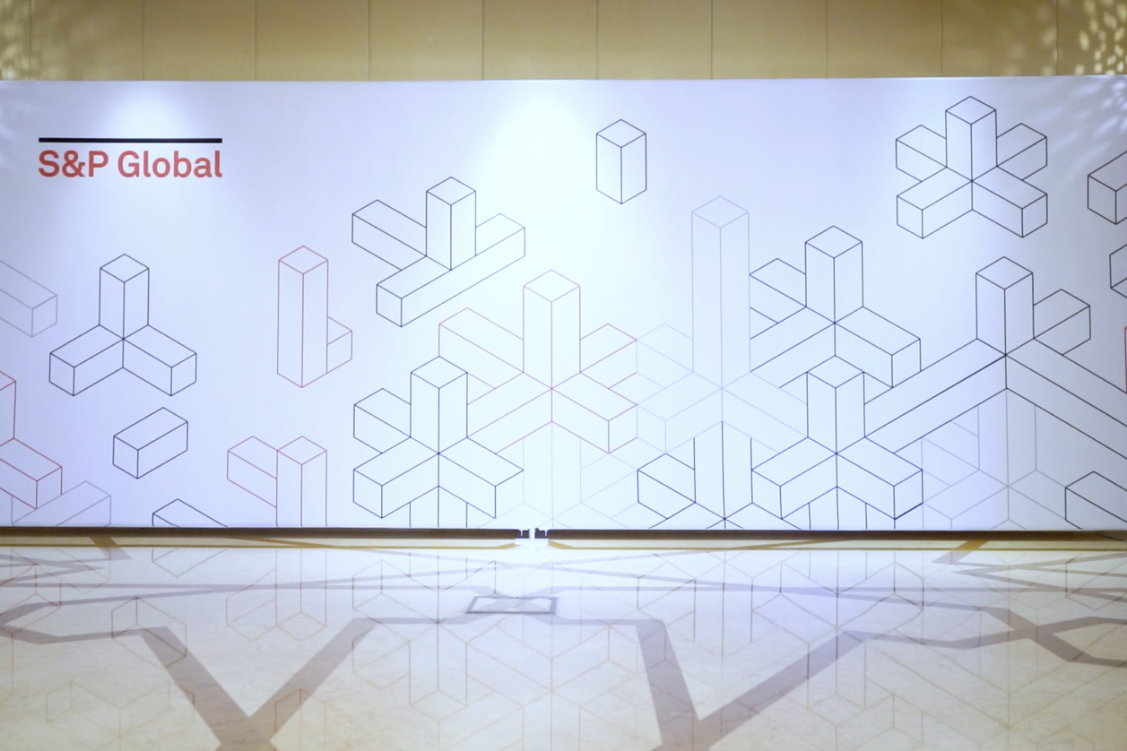 A professionally designed stage and branded backdrop were installed to anchor the programme visually and reinforce S&P Global’s corporate identity. Branding elements were applied with restraint and precision, ensuring alignment with the brand’s global standards.